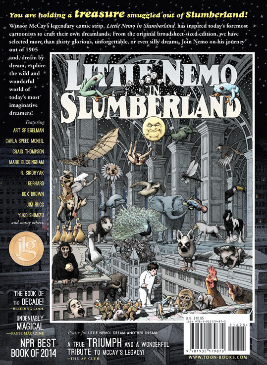 Winsor McCay’s legendary comic strip, Little Nemo in Slumberland, has inspired today’s foremost cartoonists to craft their own dreamlands. From the original broadsheet-sized "Little Nemo: Dream Another Dream," TOON Books’ Françoise Mouly has selected more than 30 glorious, unforgettable, or even silly dreams. Join Nemo on his journey out of 1905 and, dream by dream, explore the wild and wonderful world of today’s most imaginative dreamers! Includes a new, illustrated forward by Art Spiegelman. An abridged and shrunk-down hardcover edition of Locust Moon's Nemo tribute, perfect for kids and libraries.